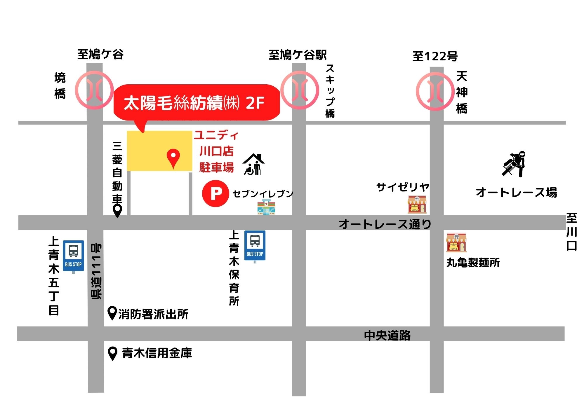 お車でお越しの場合は、隣接するユニデイ川口店の駐車場をご利用ください。